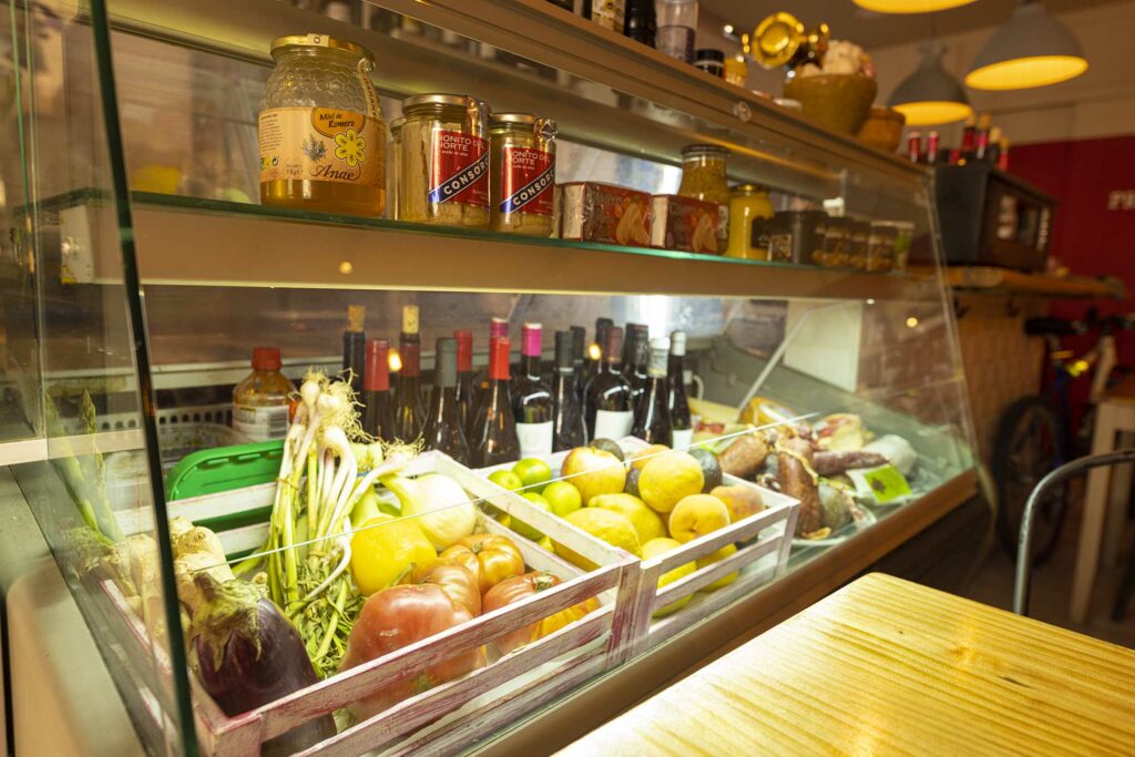 Carlos, a funny singing waiter was serving us and we saw a lot of vegetarian options. Johan ordered “Patatas de la abuelita veganas” (Grandma´s potatoes with mushrooms, 8,90 Euro) and as a main course the vega burger (from the best brand there is: Beyond Meat, 8,90 Euro) and I ordered “Pulpo con parmentier de patata y costar de pimentón dulce” (Octopus with mashed potatoes and a sweet paprika crust, 15,90 Euro) and from the Menu del Día “Plato de carrilleras en salsa Español” (the cheeks of the cow).